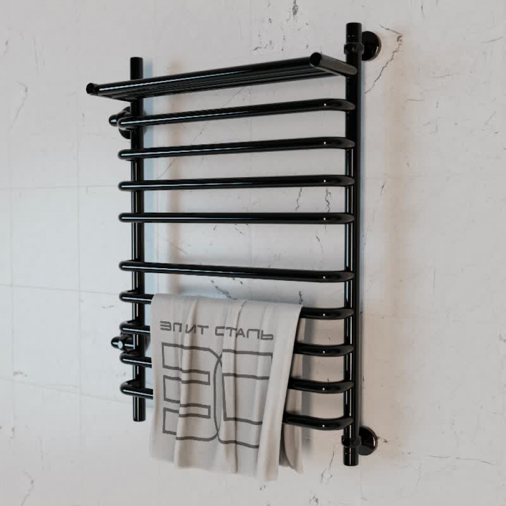 Полотенцесушитель водяной Элит Сталь Arpi черно-матовый 1000x400 (полка сверху и лево-боковое подключение)
