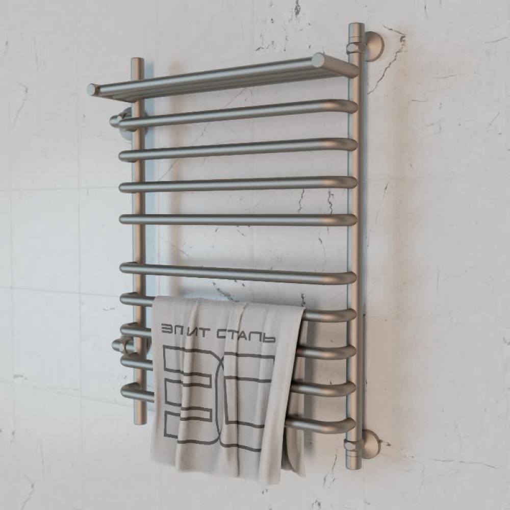 Полотенцесушитель водяной Элит Сталь Arpi сатин 1000x500 (полка сверху и лево-боковое подключение)