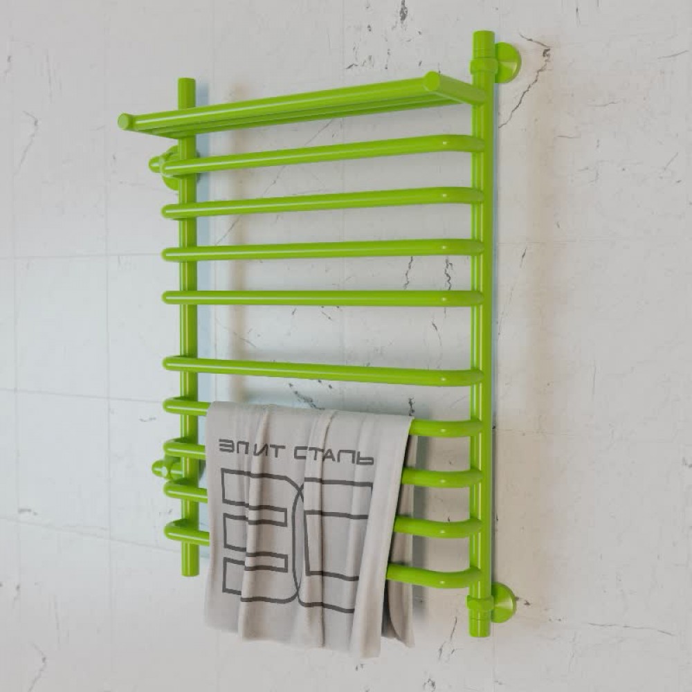 • Полотенцесушитель водяной Элит Сталь Arpi зеленый 1000x400 (полка сверху и лево-боковое подключение)