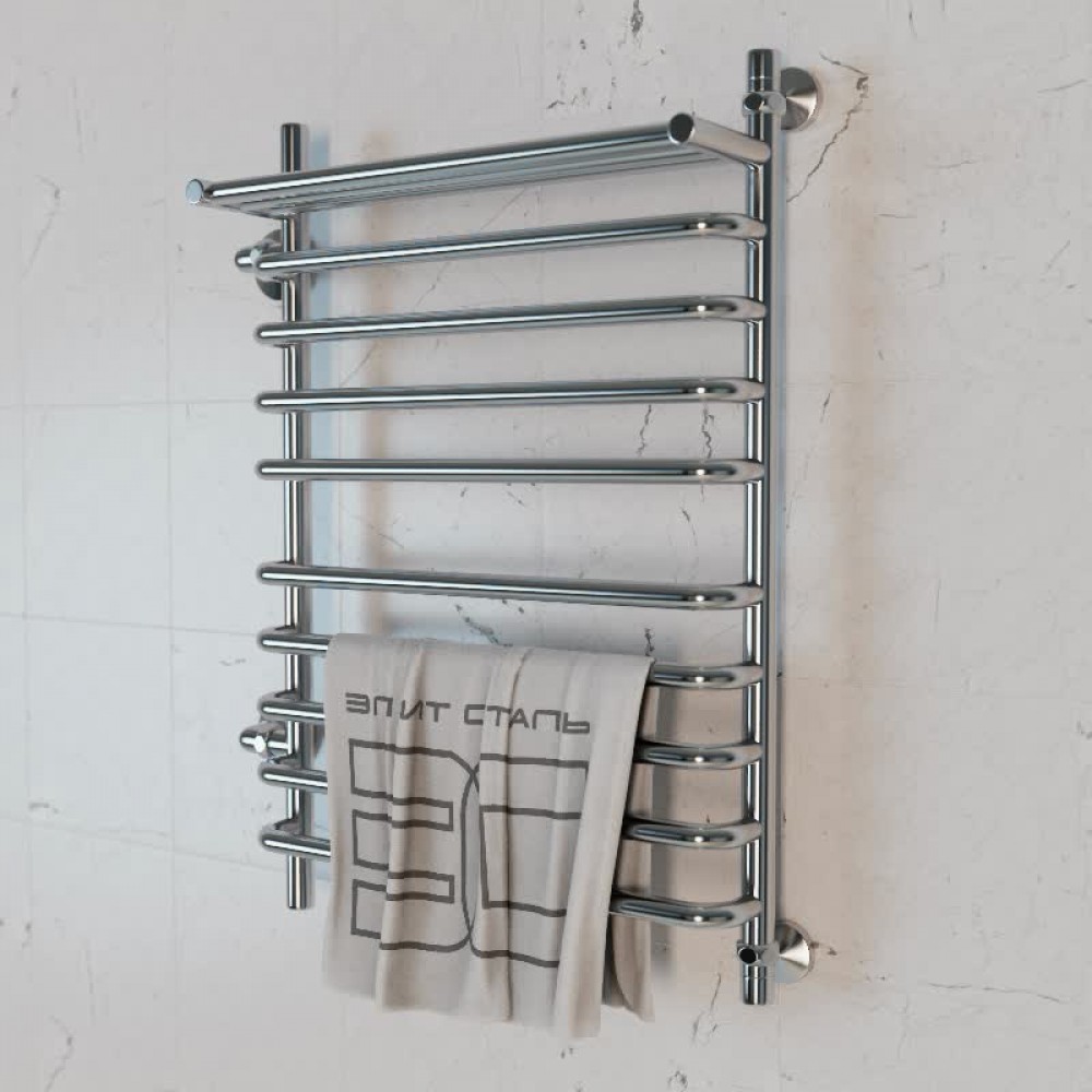 Полотенцесушитель водяной Элит Сталь Arpi хром 600x400 (полка сверху и лево-боковое подключение)