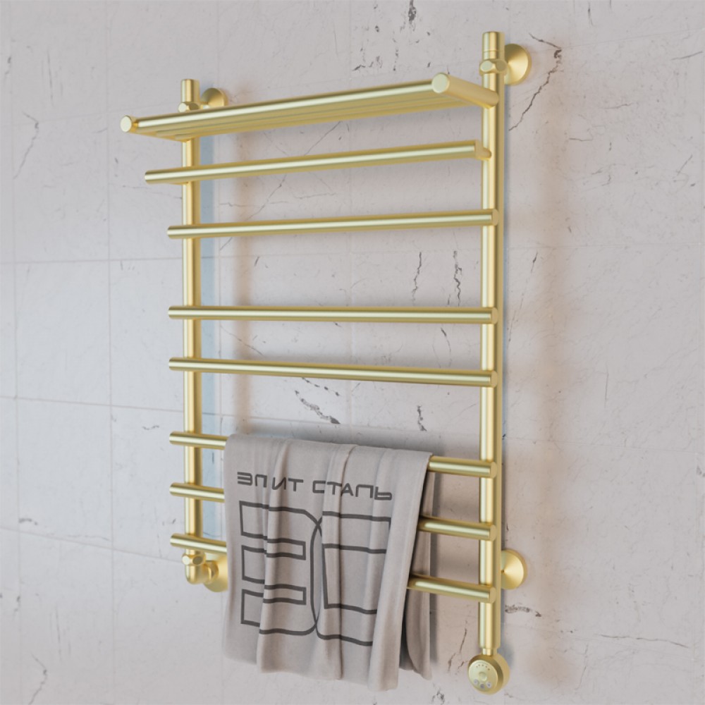 Полотенцесушитель электрический Элит Сталь Ladde золото-матовый 600x400 (полка сверху)
