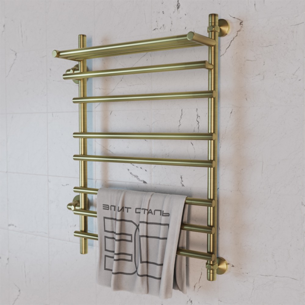 Полотенцесушитель водяной Элит Сталь Ladde бронза 1000x600 (полка сверху и лево-боковое подключение)