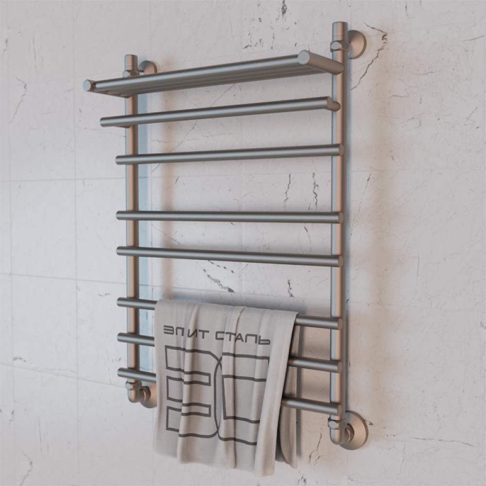 Полотенцесушитель водяной Элит Сталь Ladde сатин 600x400 (полка сверху)