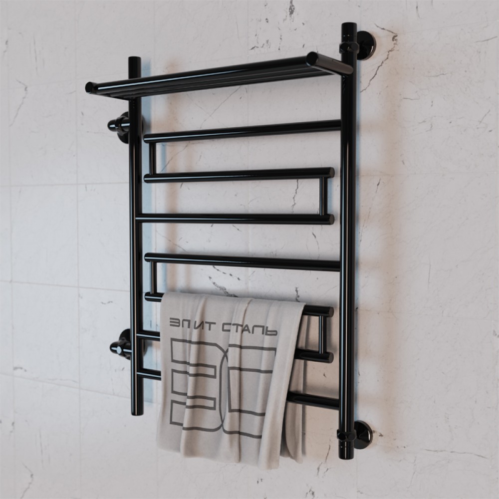 Полотенцесушитель водяной Элит Сталь Rome черно-матовый 1000x600 (полка сверху и лево-боковое подключение)