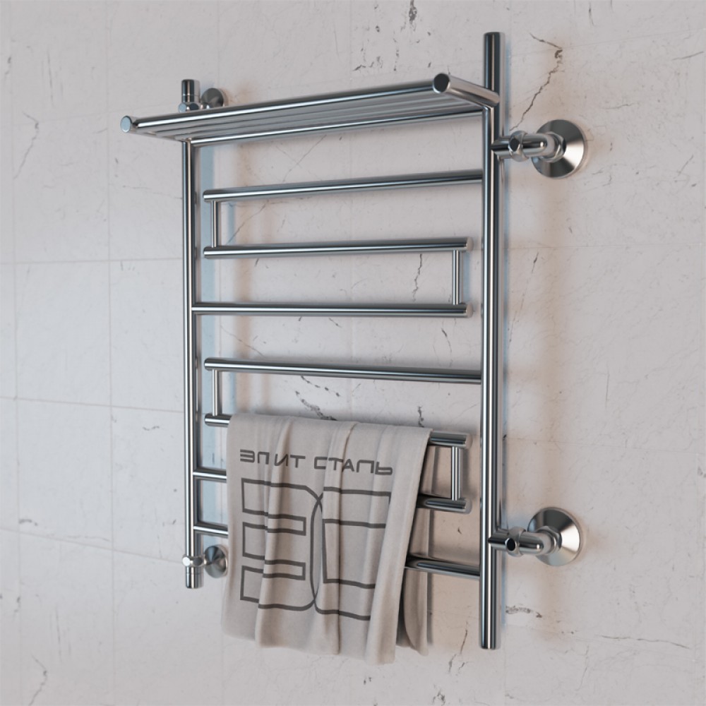 • Полотенцесушитель водяной Элит Сталь Rome хром 600x400 (полка сверху и право-боковое подключение)