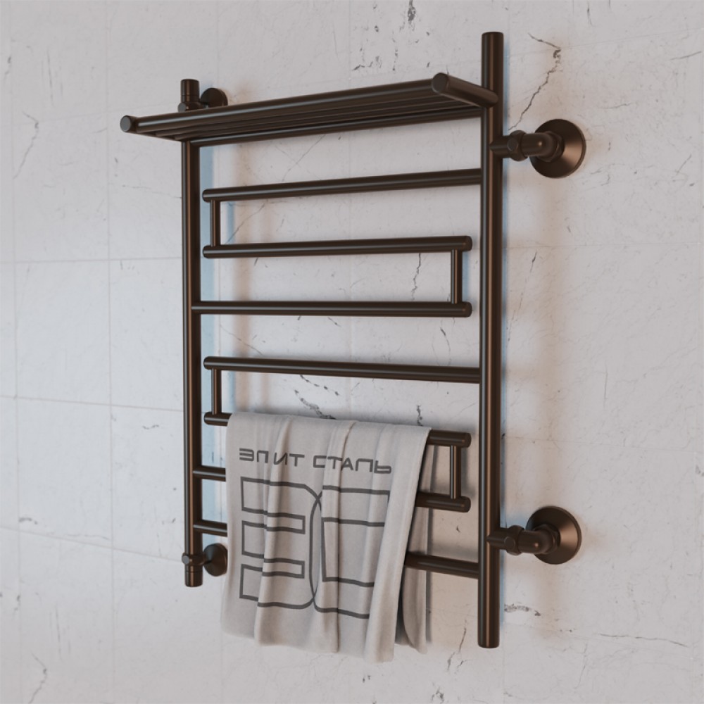 Технические характеристики Полотенцесушитель водяной Элит Сталь Rome коричневый 1000x600 (полка сверху и право-боковое подключение)