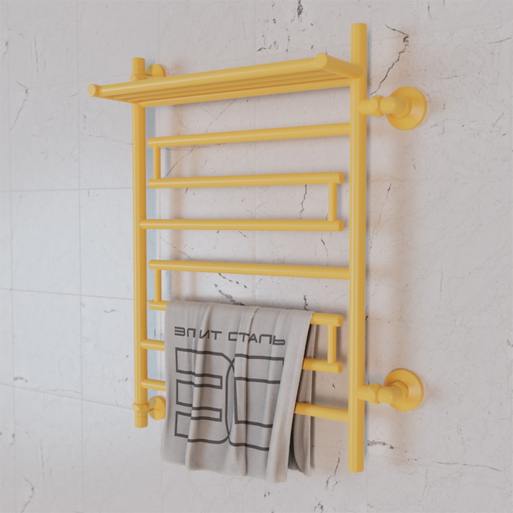 Полотенцесушитель водяной Элит Сталь Rome лимонный 700x500 (полка сверху и право-боковое подключение)