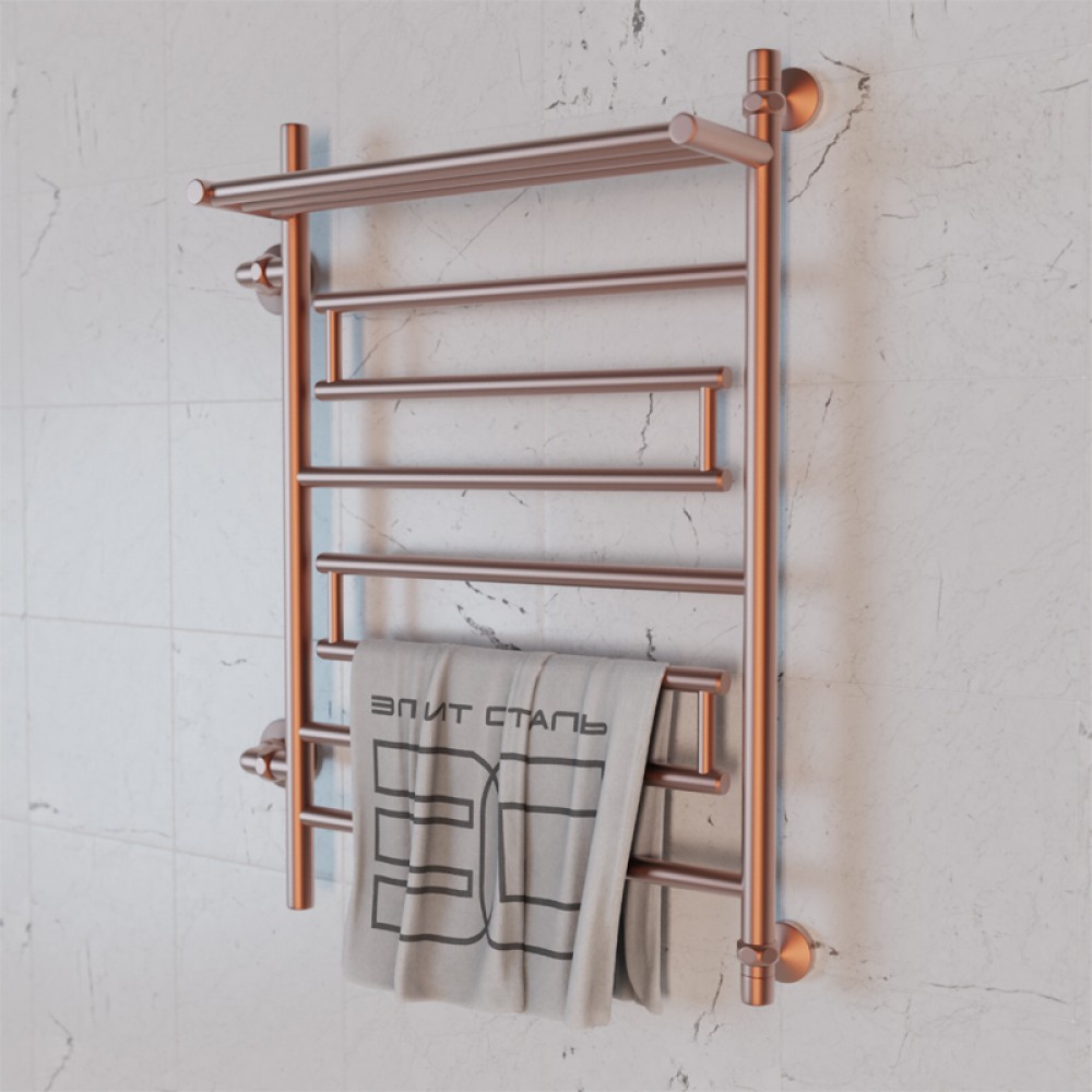 Полотенцесушитель водяной Элит Сталь Rome розовое золото 600x400 (полка сверху и лево-боковое подключение)