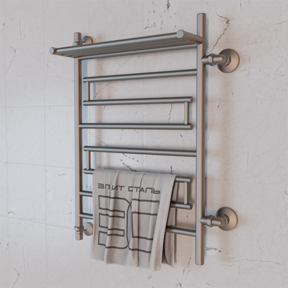 Полотенцесушитель водяной Элит Сталь Rome сатин 600x500 (полка сверху и право-боковое подключение)