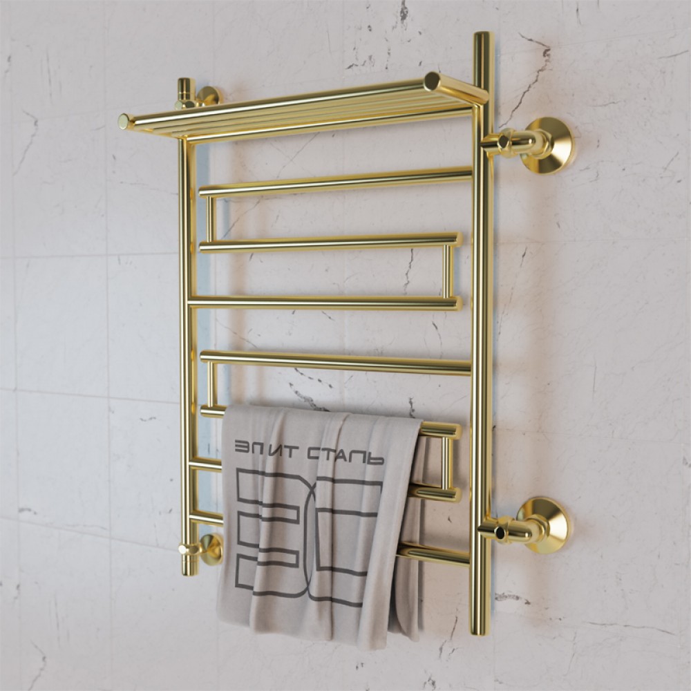 • Полотенцесушитель водяной Элит Сталь Rome золото 800x500 (полка сверху и право-боковое подключение)
