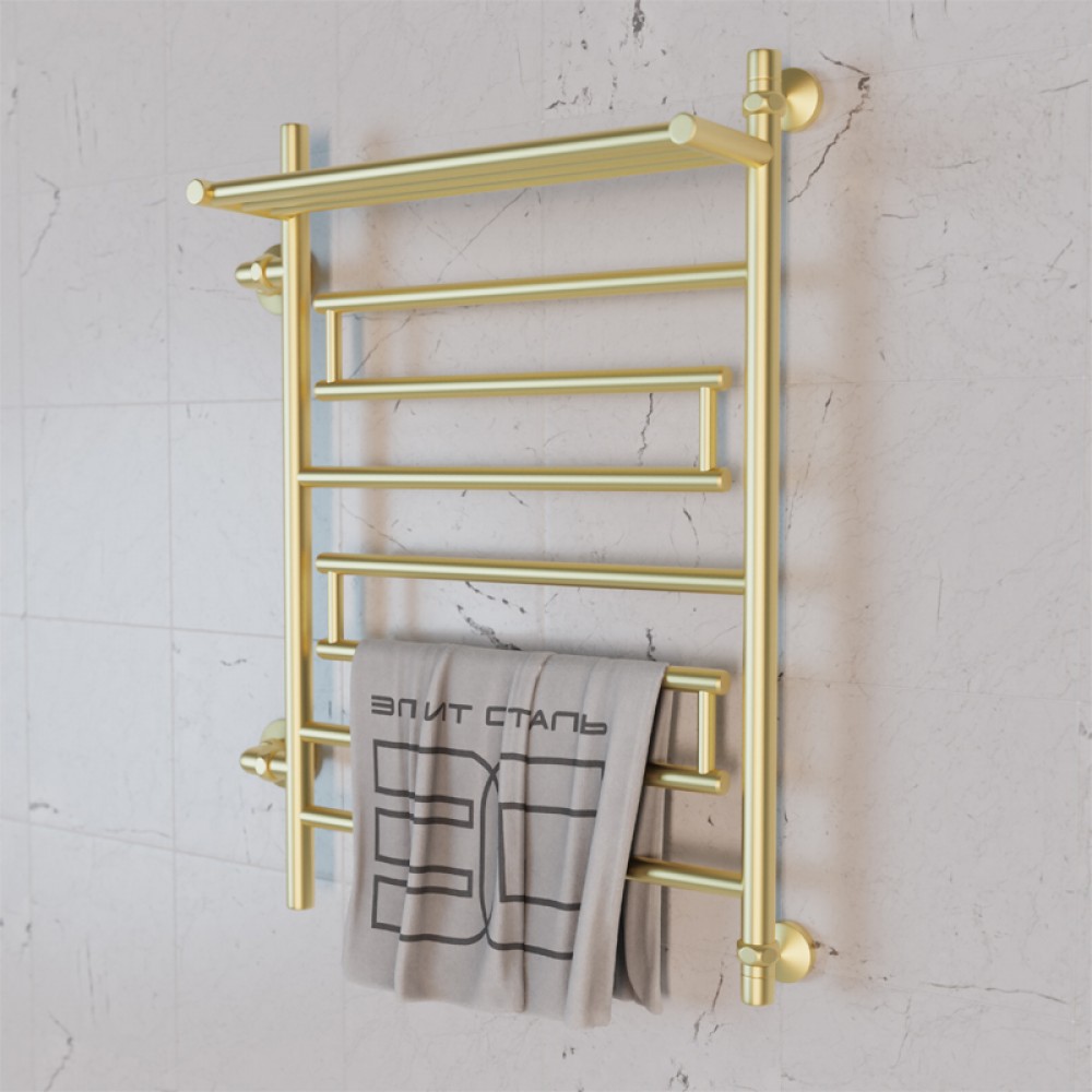 • Полотенцесушитель водяной Элит Сталь Rome золото-матовый 700x400 (полка сверху и лево-боковое подключение)