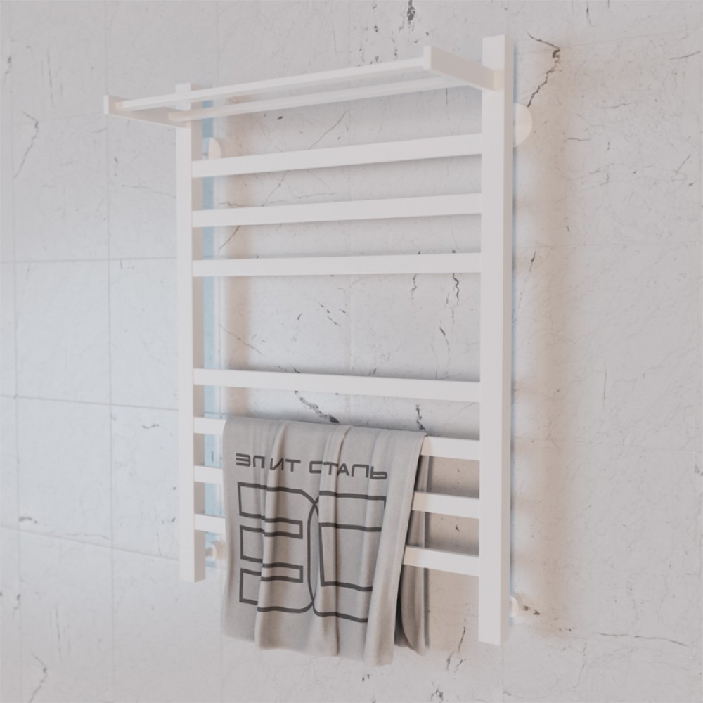 • Полотенцесушитель водяной Элит Сталь Square белый 1000x500 (полка сверху)