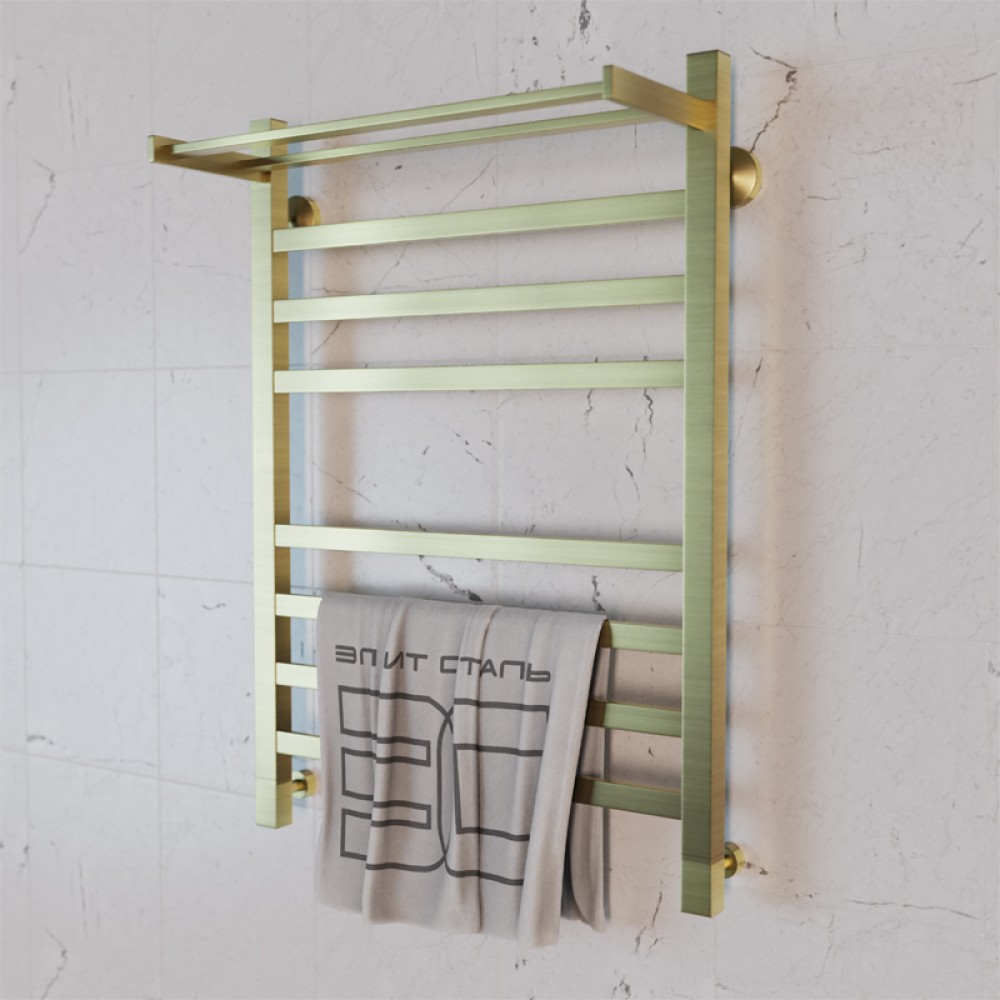 Полотенцесушитель водяной Элит Сталь Square бронза 1000x500 (полка сверху)