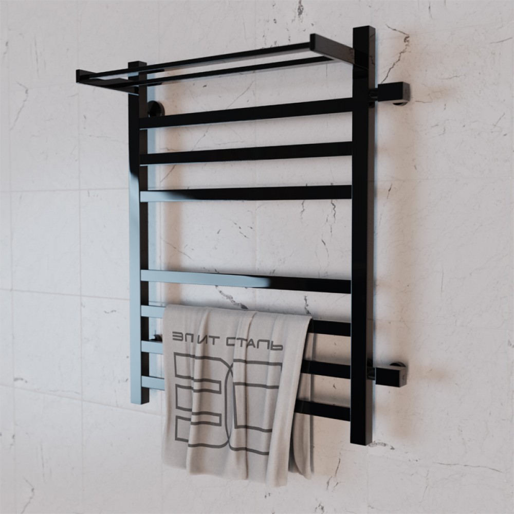 Полотенцесушитель водяной Элит Сталь Square черно-матовый 600x400 (полка сверху и право-боковое подключение)
