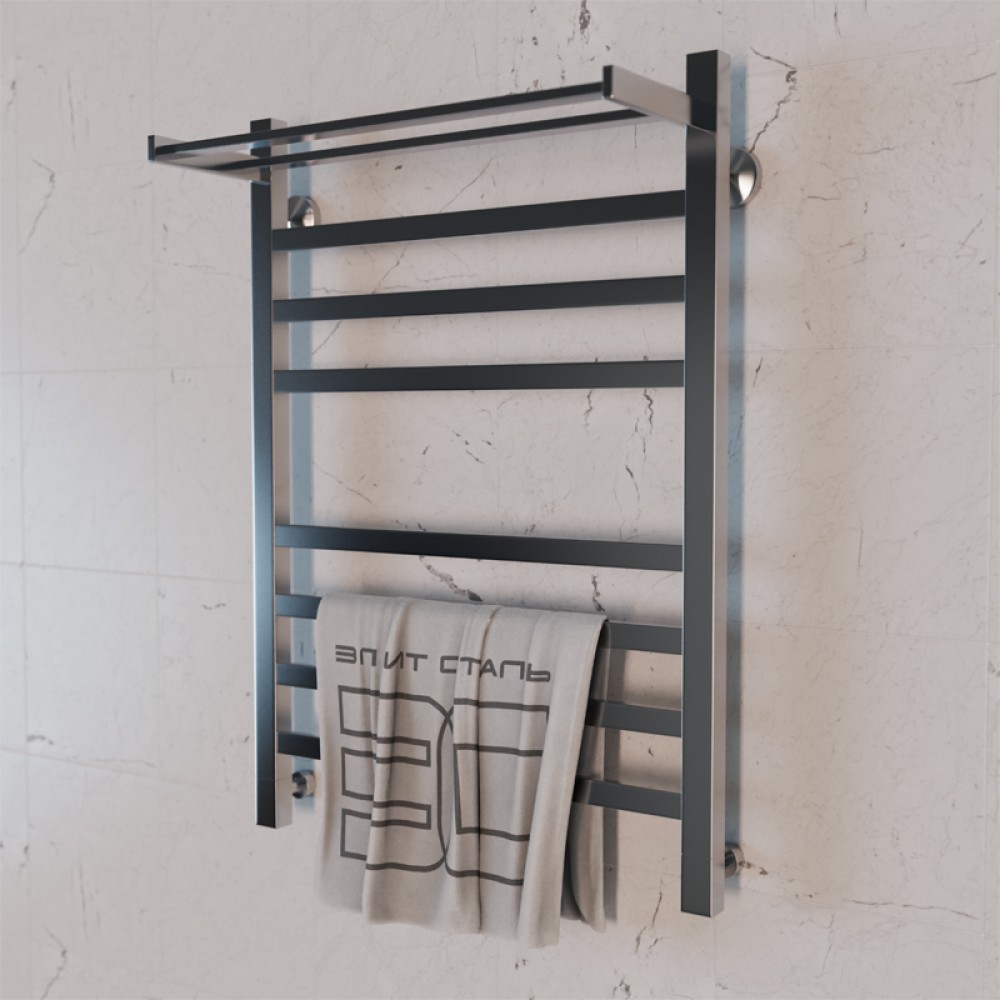 Полотенцесушитель водяной Элит Сталь Square хром 600x400 (полка сверху)