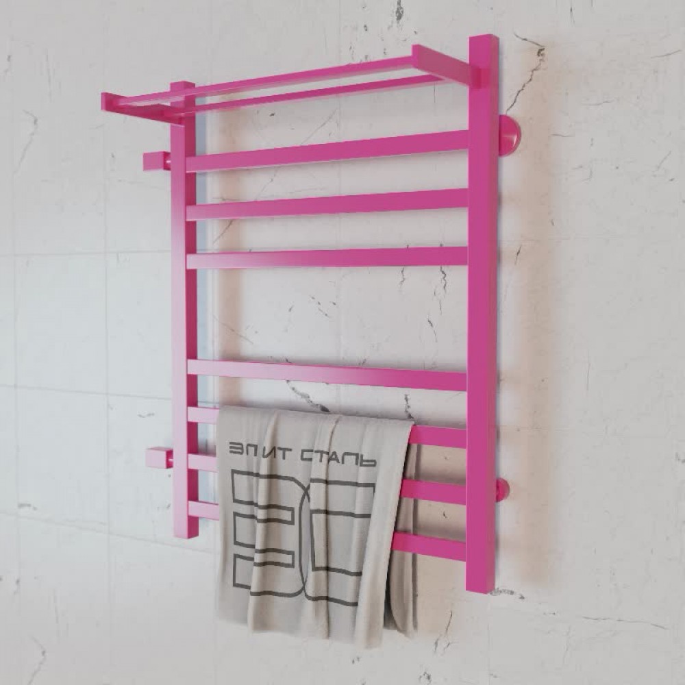 Полотенцесушитель водяной Элит Сталь Square фуксия 1200x400 (полка сверху и лево-боковое подключение)