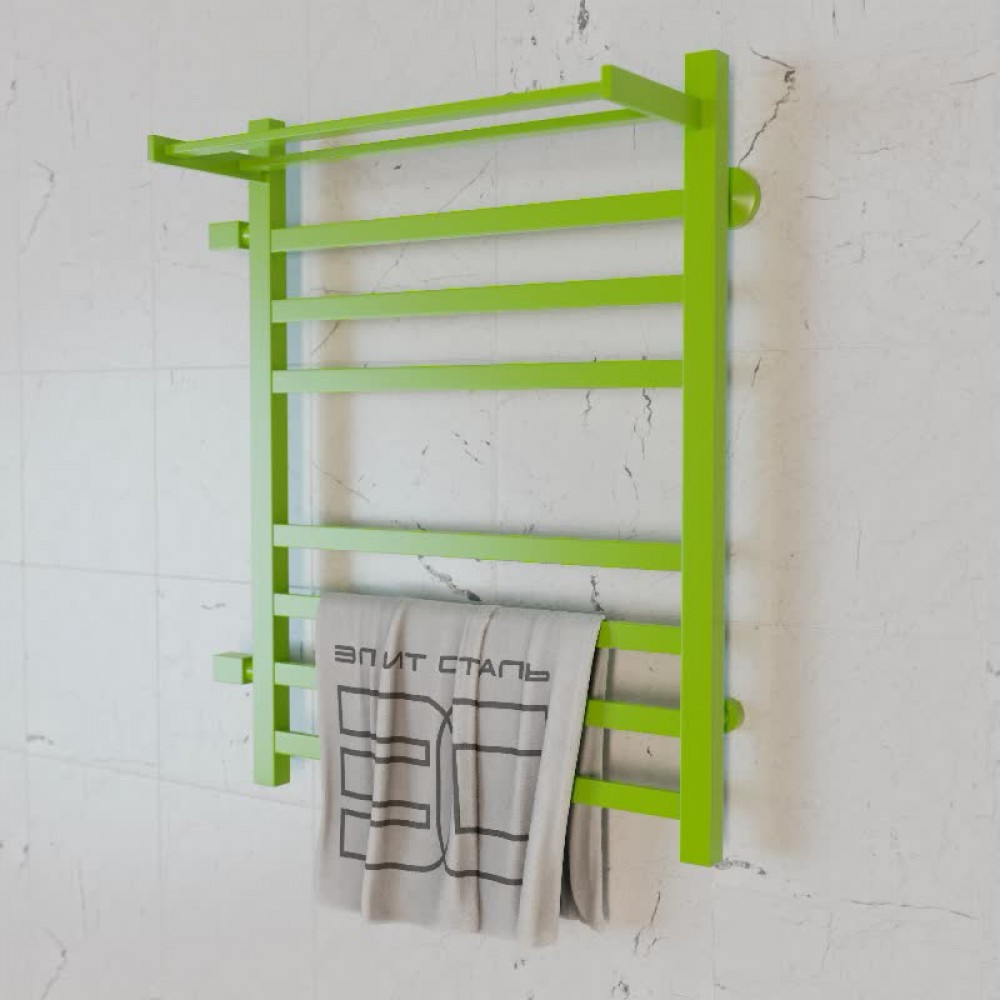Полотенцесушитель водяной Элит Сталь Square зеленый 1000x400 (полка сверху и лево-боковое подключение)