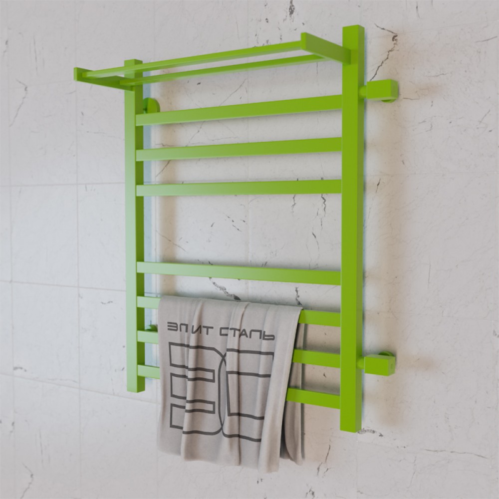 Полотенцесушитель водяной Элит Сталь Square зеленый 1000x600 (полка сверху и право-боковое подключение)