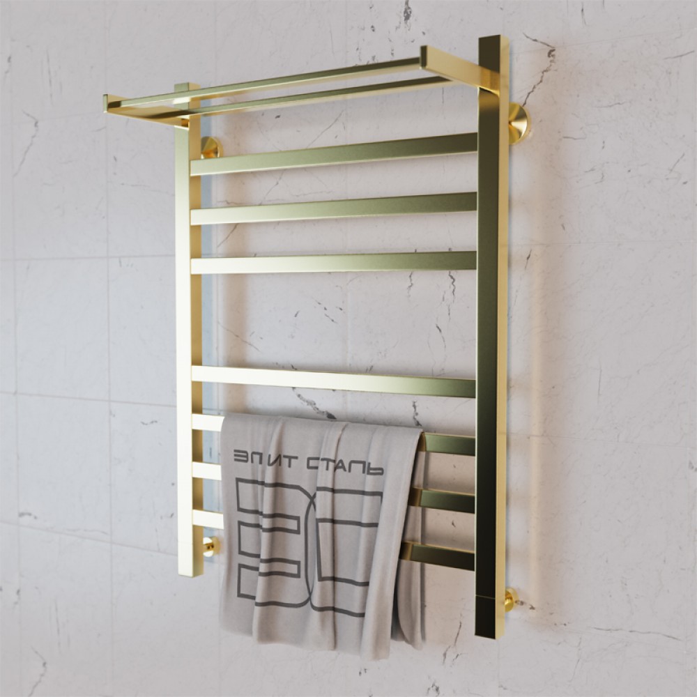 • Полотенцесушитель водяной Элит Сталь Square золото 700x600 (полка сверху)