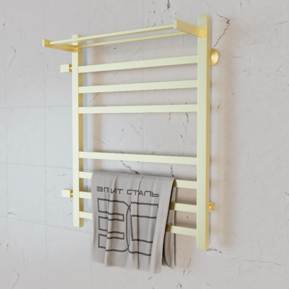 Полотенцесушитель водяной Элит Сталь Square золото-матовый 1200x500 (полка сверху и лево-боковое подключение)