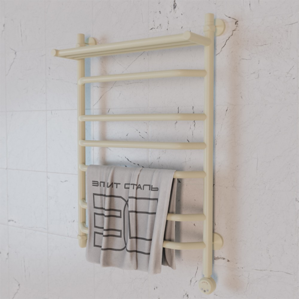 • Полотенцесушитель электрический Элит Сталь Trapezoid бежевый 700x600 (полка сверху)