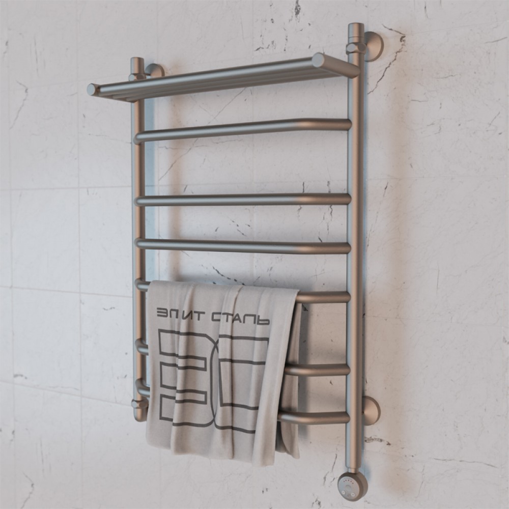 Полотенцесушитель электрический Элит Сталь Trapezoid сатин 800x500 (полка сверху)