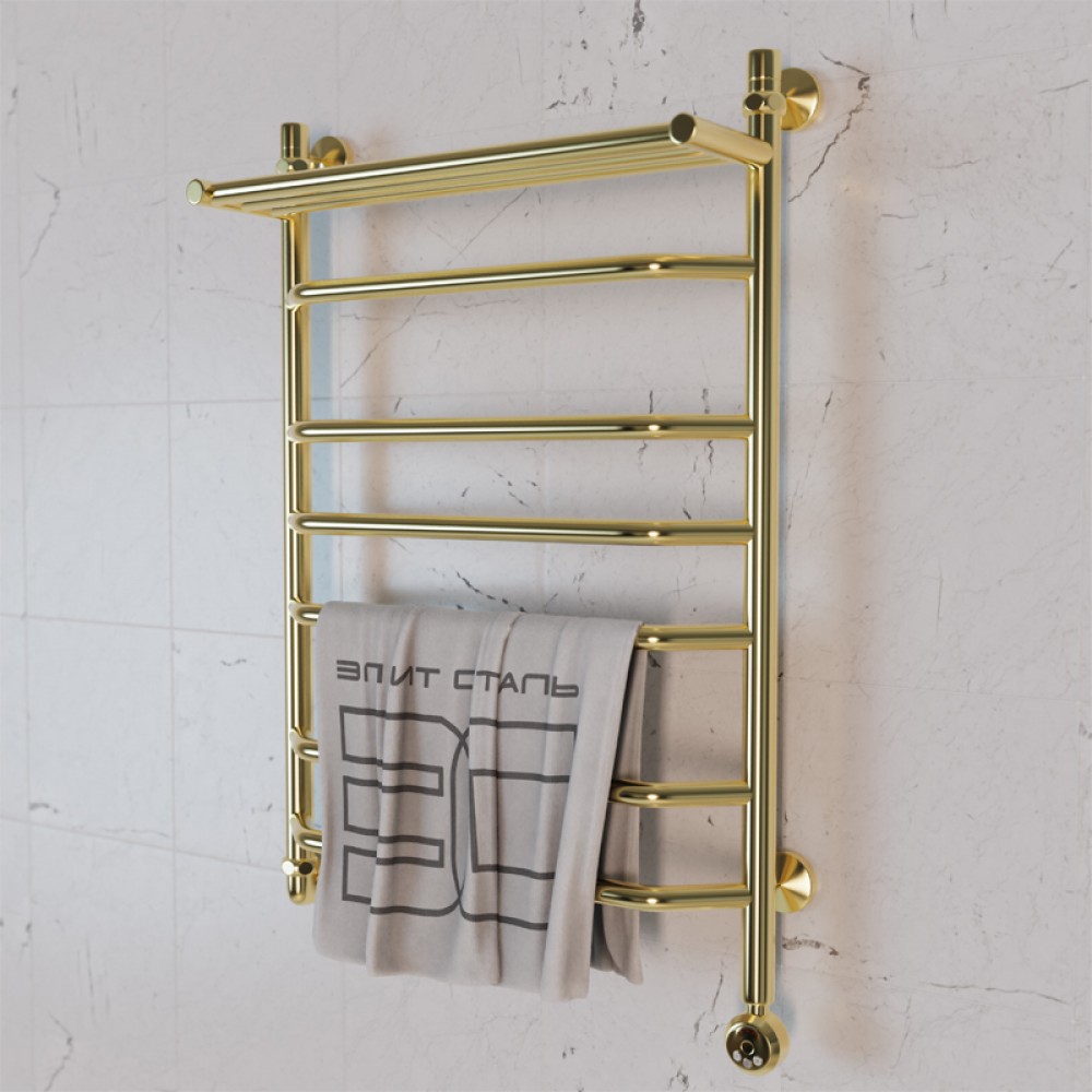 • Полотенцесушитель электрический Элит Сталь Trapezoid золото 800x500 (полка сверху)