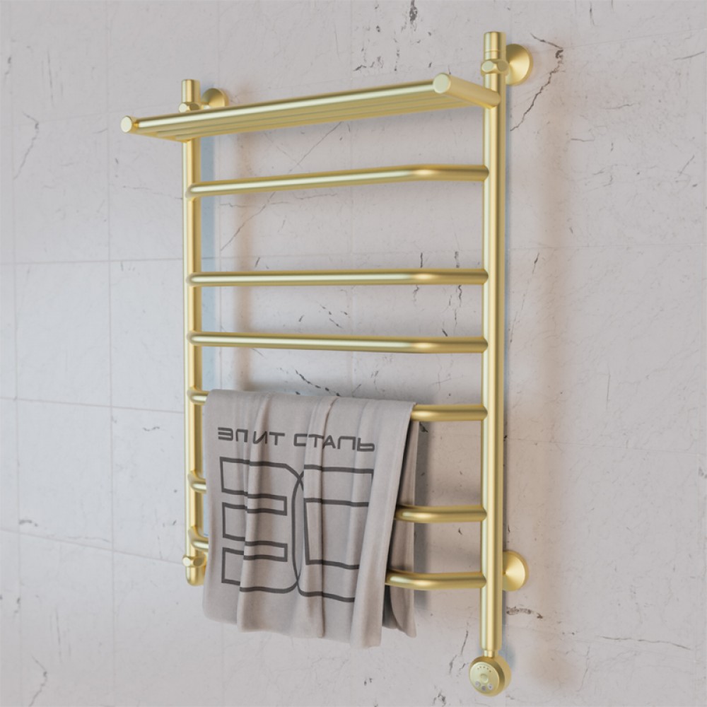 Полотенцесушитель электрический Элит Сталь Trapezoid золото-матовый 600x600 (полка сверху)