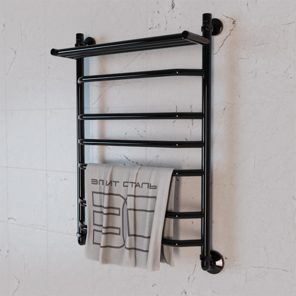 Полотенцесушитель водяной Элит Сталь Trapezoid черно-матовый 1200x400 (полка сверху)