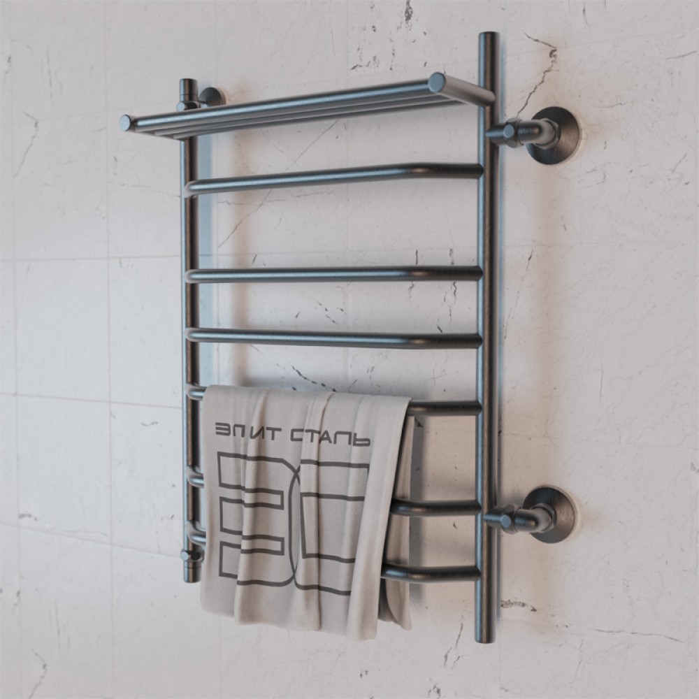 Полотенцесушитель водяной Элит Сталь Trapezoid графит 600x400 (полка сверху и право-боковое подключение)