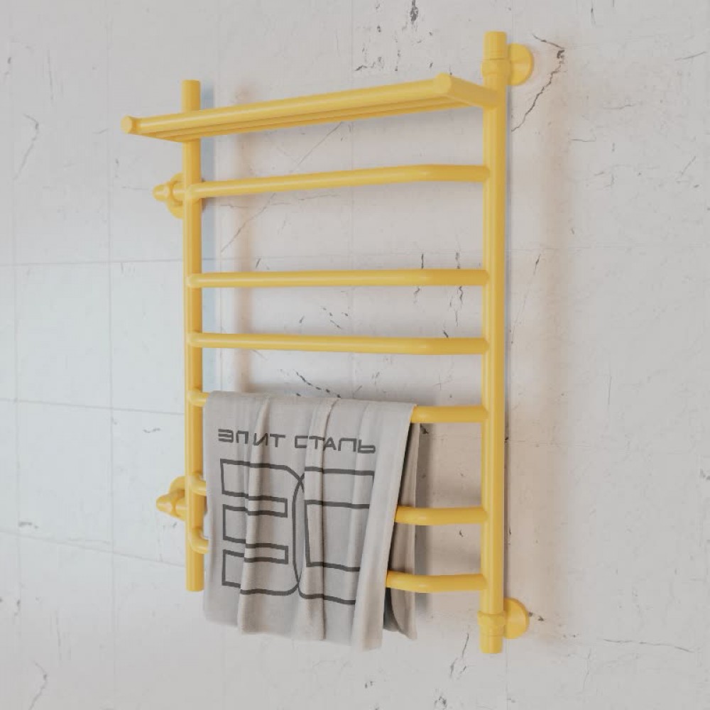 Технические характеристики Полотенцесушитель водяной Элит Сталь Trapezoid лимонный 1200x500 (полка сверху и лево-боковое подключение)