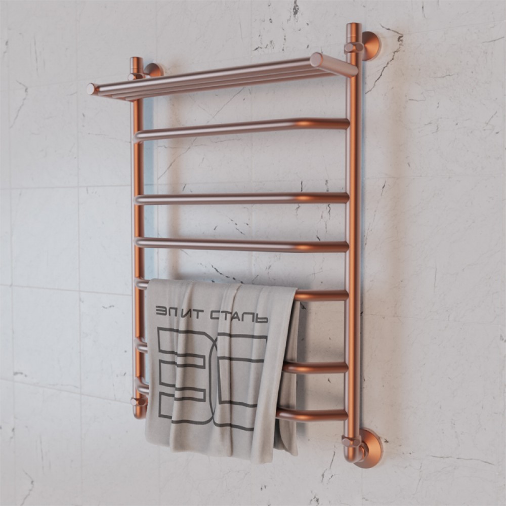 Полотенцесушитель водяной Элит Сталь Trapezoid розовое золото 600x400 (полка сверху)