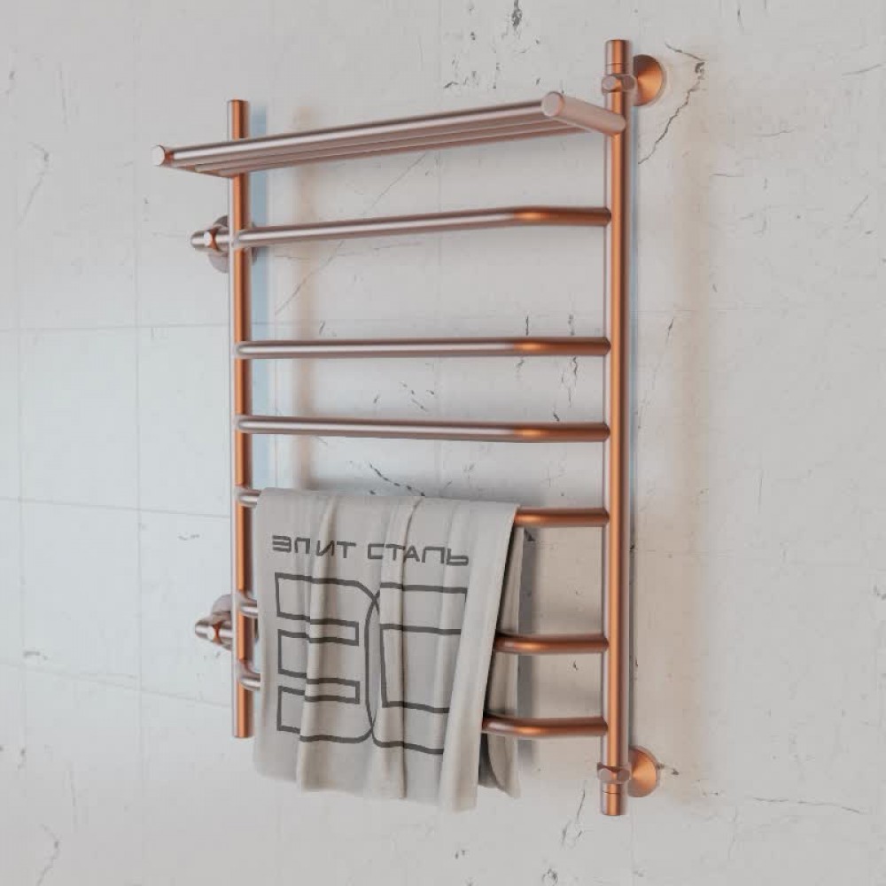 Полотенцесушитель водяной Элит Сталь Trapezoid розовое золото 700x400 (полка сверху и лево-боковое подключение)