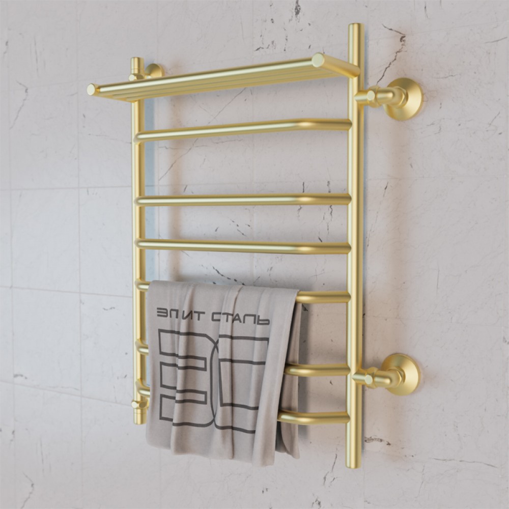 Полотенцесушитель водяной Элит Сталь Trapezoid золото-матовый 1200x600 (полка сверху и право-боковое подключение)