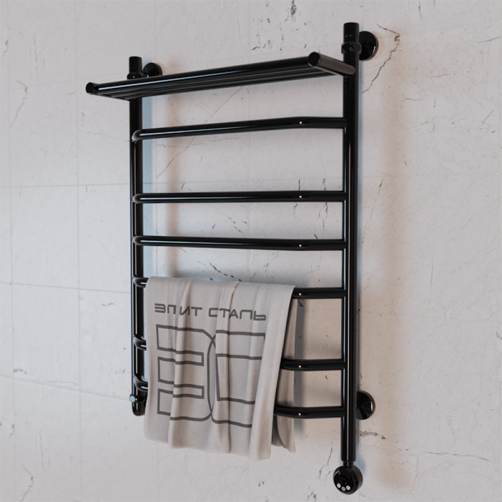 • Полотенцесушитель электрический Элит Сталь Trapezoid черно-матовый 700x400 (полка сверху)